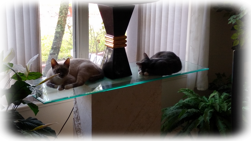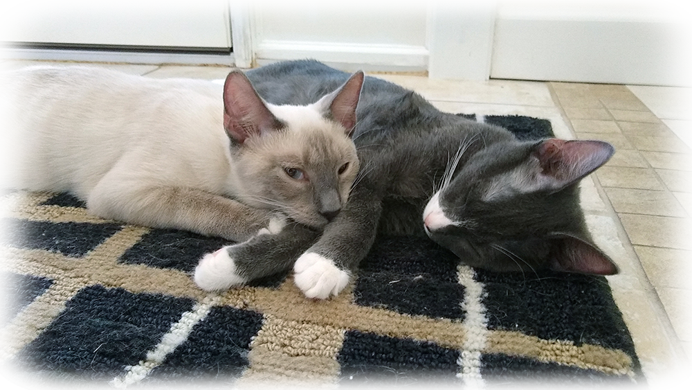 They've been here for a few months and are still inseparable. Bandit is the hellion of the two and Smokey is the wing-man, following his brother into mischief and trouble.